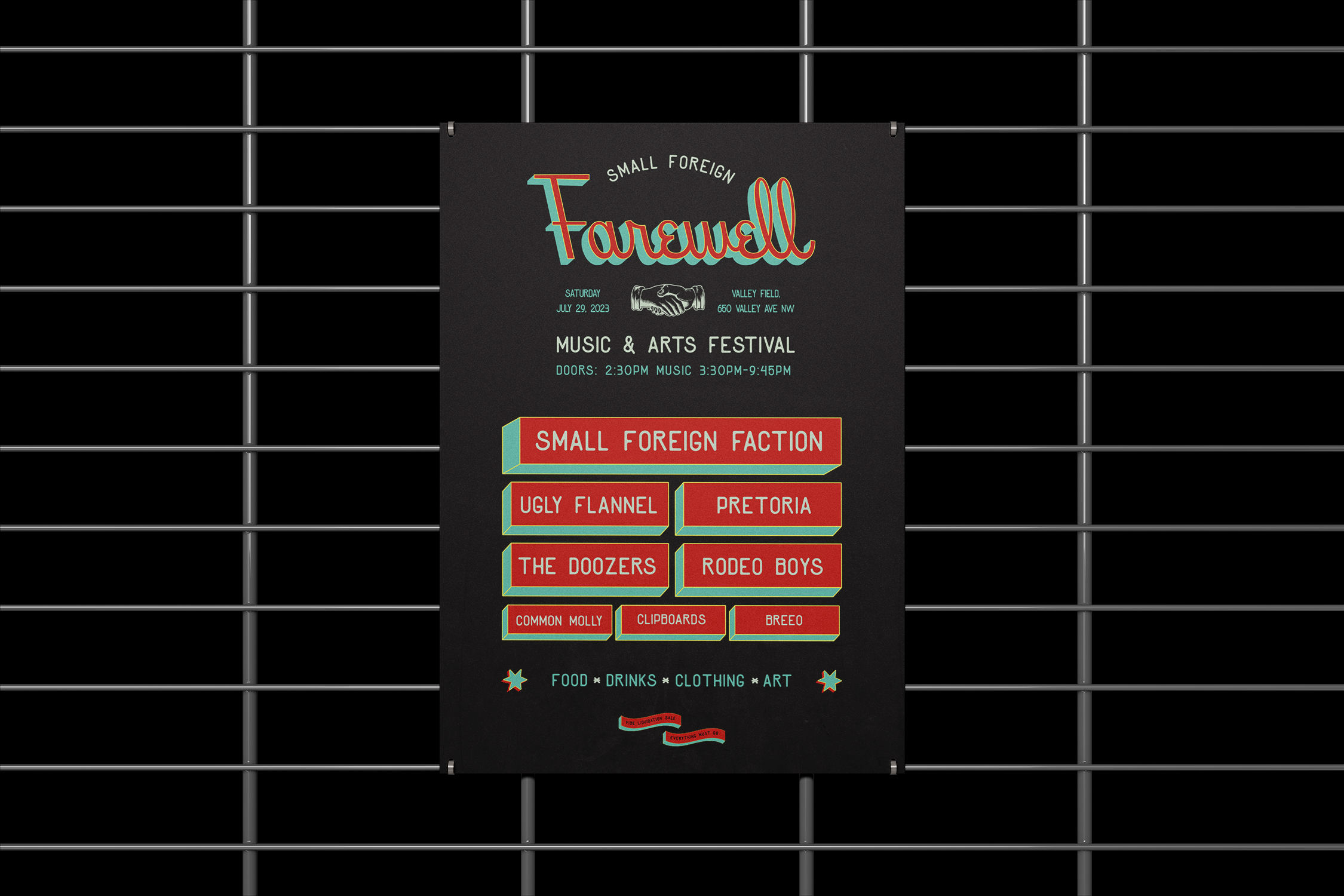 For Small Foreign Faction’s last hooray - they threw a one day festival hosted in Grand Rapids, MI. The concept was ‘Small Foreign Farewell’. We were inspired by a vintage travel aesthetic as a means to communicate to a long hiatus. We combined this retro aesthetic with grungy photography and colors to reflect Small Foreign Faction’s genre of music.